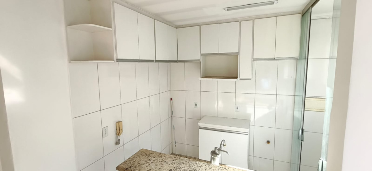 Apartamento 02 quartos com armarios, banho social com box blindex sala para 02 ambientes conjugado com cozinha americana, bancada em granito e armarios planejados, area de servico com divisoria em blindex e armarios, 01 vaga demarcada e coberta.