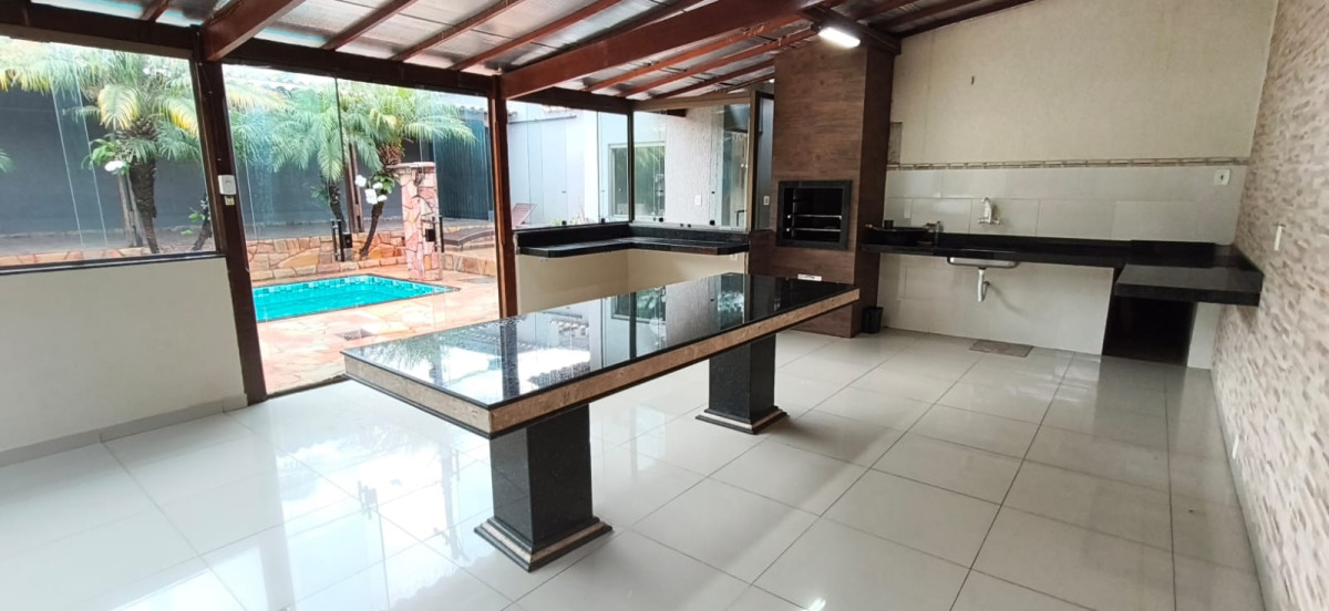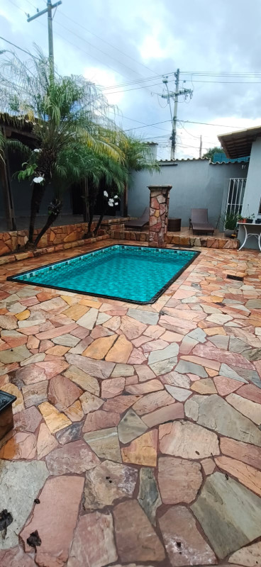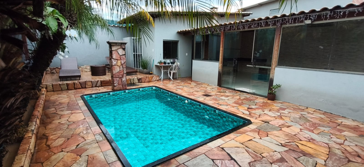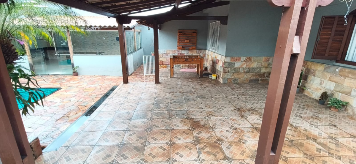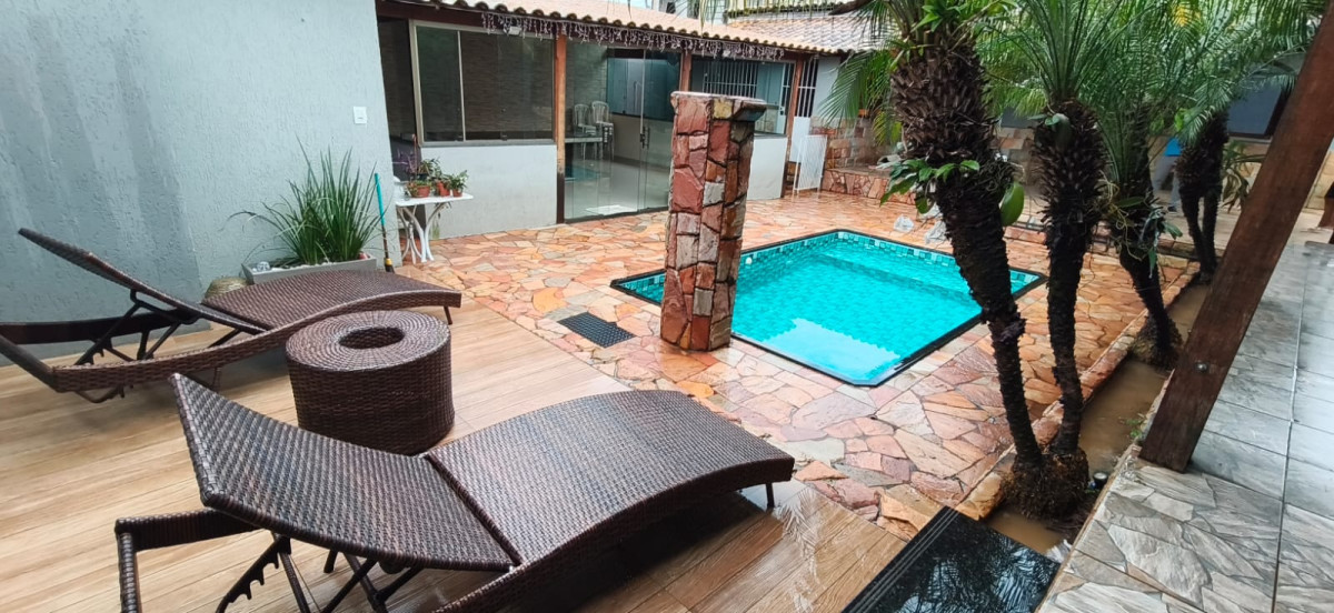 Excelente casa colonial com 03 quartos com armarios, sala ampla com parede ripada e teto rebaixado com gesso e iluminaçao em led, sala de jantar, banho social com box plindex e pia sobre posta, cozinha com bancadas em granito e armarios planejados e dispensa, area de serviço, quintal, area gourmet coberta telhado colonial fechamento em blindex, bancada em granito com pia e churrasqueira, piscina maravilhosa com cascata, sauna, 02 duchas, quarto de despejo, 05 vagas cobertas em linha.
